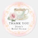 Terminez votre douche de mariée avec une touche sincère en utilisant cet autocollant élégant « Merci ». Avec une délicate tasse à thé vintage, une rose rose et un ornement doré romantique, cette étiquette ronde rose pâle se coordonne parfaitement avec votre thème de fête « L'amour est dans l'air ». Personnalisée avec le nom de la mariée, elle est idéale pour sceller les sacs de faveurs, les enveloppes ou les boîtes-cadeaux avec charme et grâce.