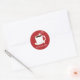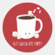 stickers de vacances pour une fête de Noël Hot Chocolate. Ces autocollants comportent une tasse souriante de cacao chaud avec un sucre de canne et plusieurs guimauves joyeux sur un arrière - plan rouge. Tous les mots peuvent être customisés. Fête de Noël Chocolat chaud cacao chaud Classic rond Sticker Sweetsham Food Art | ©Melissa Patton - Artiste/Illustrateur