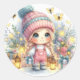 Sticker Rond Fête de Noël mignonne Bébé Fille