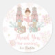 Whimsical Les Étiquettes de l'autocollant rond de ballet de cétacés. Personnalisez-les avec vos détails facilement et rapidement, appuyez simplement sur le bouton Modifier à l'aide des outils de conception pour réorganiser et formater le style et le placement du texte. Doté de personnages fantaisistes du Nutcracker dans des couleurs pastel sucrées. Parfait pour le premier anniversaire de votre petit flocon de neige ! Objets correspondants disponibles en magasin ! c) Le Happy Cat Studio.