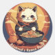 Sticker Rond Fête de Ramen fête d'anniversaire avec Anime Cat