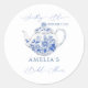 Tendance, élégant, théière vintage avec motif toile de Jouy "quelque chose de bleu avant que je le fasse" autocollants thème mariage
