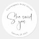 Sticker Rond Fête des mariées De Script Moderne Elle A Dit Oui