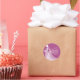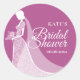 Un autocollant chic pour la douche nuptiale avec une mariée portant une robe élégante mariage en dentelle sur un arrière - plan de prune avec un texte blanc en écriture magnifique pour vos détails spéciaux de douche nuptiale. Vous pouvez customiser la couleur de l'arrière - plan pour la coordonner avec votre thème mariage.
