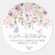 Un Sticker rond Fête des mariées De Papillons À Vie. Ajoutez une touche sucrée et fantaisiste à vos faveurs de douche nuptiale, à vos emballages ou à vos décorations grâce à ce design d'autocollant rond, parfait pour une célébration à thème papillon. L'aménagement est composé de délicats fleurs sauvages d'aquarelle et de verdure disposés le long du sommet, avec des papillons roses et violets qui traversent l'arrière - plan. La palette de couleurs comprend des roses rousses, des rose poussiéreux, du lilas, de la lavande, du violet et des verts doux—idéal pour une douche nuptiale rêvée d'inspiration jardin. Le texte est bien placé en bas, avec l’expression "A Lifetime Of Butterflies" dans une police de caractères charmant, avec espace pour ajouter le nom de la mariée, la date de l’événement, ou un court message dans une police serif propre pour une touche moderne. Parfait pour les douches nuptiales du printemps ou de l'été, ce design fonctionne magnifiquement pour les joints de faveur, les fermetures d'enveloppes ou l'emballage cadeau de remerciement. Tout le texte, les polices et les couleurs peuvent être customisés pour correspondre à votre thème.