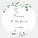 Cet autocollant pour douche nuptiale vert feuillage script est parfait pour un wedding shower moderne. Le design se compose d'aquarelle dessinée à la main d'élégantes branches d'eucalyptus botaniques et de feuilles, disposés en de beaux bouquets et motifs géométriques.