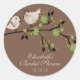 Mignons inséparables autocollant rond Fête des mariées avec des oiseaux mariés et mariés assis sur une branche avec des fleurs vertes posées sur un arrière - plan chocolat. Idéal pour les étiquettes de douches nuptiales et les scellés d'enveloppe ! Customisez avec vos informations de douche nuptiale et vous êtes tous prêts à partir ! Invitations et timbres-poste correspondants disponibles dans notre boutique www.celebrateitinvites.com.