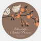 Mignons inséparables autocollant rond Fête des mariées avec des oiseaux mariés et mariés assis sur une branche avec des fleurs de tango orange sur un arrière - plan chocolat brun. Idéal pour les étiquettes de douches nuptiales et les scellés d'enveloppe ! Customisez avec vos informations de douche nuptiale et vous êtes tous prêts à partir ! Invitations et timbres-poste correspondants disponibles dans notre boutique www.celebrateitinvites.com.