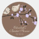 Mignons inséparables autocollant rond Fête des mariées avec des oiseaux mariés et mariés assis sur une branche avec des fleurs lilas lavande sur un arrière - plan chocolat. Idéal pour les étiquettes de douches nuptiales et les scellés d'enveloppe ! Customisez avec vos informations de douche nuptiale et vous êtes tous prêts à partir ! Invitations et timbres-poste correspondants disponibles dans notre boutique www.celebrateitinvites.com.