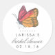 Tout à fait élégant, nos autocollants de douche nuptiale Watercolor Butterfly sont dotés d'une illustration papillon en aquarelles rouge et doré doux avec votre texte personnalisé en gris chic fusain — nom, type d'événement et date de l'invité d'honneur.