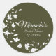 Joli et moderne autocollant de douche nuptiale dispose d'un spray de fleurs blanches et blanc texte personnalisable sur arrière - plan vert automne