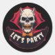 Le parfait autocollant d'enveloppe pour invitation de fête de costume d'Halloween. Crâne de squelette effrayant et sinistre avec des cornes de diable.
