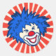 Clown de fête graphique riant autocollant amusant. Parfait pour les fêtes d'enfants ou les clowns aux cheveux bleus. D'autres articles de soirée correspondants sont disponibles. Design original par Sarah Trett pour www.mylittleeden.com