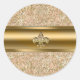 Sticker Rond Fête Fleur de lis Pailletée Rose et Or
