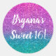 Sticker Rond Fête Pailletée Rose Turquoise Bleu et Violet Étinc