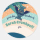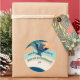 Cute poêle volant avec arc-en-ciel rétro et flocons de neige sur ce "de la cuisine de" ou "fait maison par" Noël à/de l'autocollant pour donner votre liste avec des aliments, des bonbons et des gâteries.
