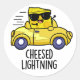 Cheesed Lightning Funny Cheese Pun présente un fromage mignon qui zoome dans sa canne chaude. Un cadeau de Perfect Puns pour la famille et les amis qui aiment les mignons puns au fromage.