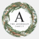 Moderne feuillage minimal hiver vert vert feuillage vacances Noël initial et nom personnalisé autocollant de décoration. L'eucalyptus peint à la main, le feuillage minimal et la couronne de rotin rustique moderne donnent à ce design de vacances une atmosphère luxueuse. Dans les verts, les bruns et les gris.
