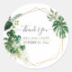 Aquarelle Feuillage varié tropical de monstera, palmiers, hostas en vert luxuriant clair et foncé pour des autocollants de remerciement de mariage avec une police manuscrite moderne et amusante et un nid d'abeilles sucré en faux or et couleur de fond DIY. Pour tout événement spécial. Copyright © 2016-2020 Bombino Designs™. Tous droits réservés.