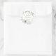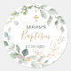 Baptême bébé / Sticker rond Christening. Cette conception présente une illustration de feuillage vert et doré en aquarelle.