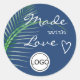 Sticker Rond Feuille d'arbre bleu faite avec amour Logo Modèle