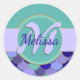 Sticker Rond Feuille de sirène de monogramme turquoise et pourp