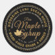 Éditer pour ajouter votre nom d'entreprise et "traditionnellement produit dans la ville/l'état", le volume de sirop d'érable et le grade avec description (c.-à-d., "feu de bois"). Étiquette noir avec bordure double et feuille d'érable à sucre jaune.