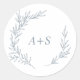 Ces enveloppes miniatures bleu monogramme feuillues et poussiéreuses sont parfaites pour un mariage élégant. Le design se compose d'une simple silhouette de verdure en ardoise bleue claire et de style minimaliste classique. Personnalisez le étiquette avec les noms de la mariée et du marié.