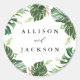 Sticker Rond Feuille Tropical moderne Gold Mariage personnalisé