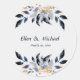 Autocollant Rond Classique Feuilles Bleues avec Mariage Or conçu avec des feuilles délicates et douces dans des nuances de bleu marine et de bleu clair, rehaussées de reflets dorés. Le texte comprend : les prénoms des mariés et la date du mariage. Pour personnaliser, insérez simplement vos informations dans notre modèle facile, en remplaçant le texte d'exemple. N'oubliez pas de consulter l'ensemble de la collection Feuilles Bleues avec Mariage Or pour des pièces assorties.