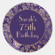 Sticker Rond Feuilles d'or violet élégant 75e anniversaire