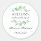 Sticker rond mariage Welcome avec feuilles d'eucalyptus aquarelle. Entrez simplement vos noms, date du mariage. Vous pouvez changer la police que vous voulez.