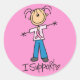 Chien à bâtons portant un tee rose avec ruban rose et le texte "I Support". Customisez la couleur de l'arrière - plan ou ajoutez un nom ou un texte. Disponible sur une variété de produits de t-shirts, sweat - shirts à capuche, mugs, mousepads, boutons, autocollants et plus encore.