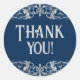 Sticker Rond Filigree Art déco | Argent et Merci bleu marine