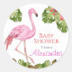 Sticker Rond Fille Baby shower rose Flamant rose faune tropical
