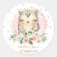 Sticker Rond Fille Bois Chouette Bébé 1er Anniversaire Fête Fav