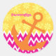 Sticker Rond Fille Chevrons Rose Ancre orange avec nom
