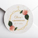 Sticker Rond Fille Confirmation Camellia Rose Floral Or Marbre