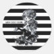 Sticker Rond Fille Crâne Sucre Jolie Rayée Noir et Blanc
