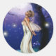Cette fée amoureuse de la lune porte une longue robe blanche et des ailes de libellules se tiennent dans un cadre de forêt magique de bleus et de violets. Bon appétit !