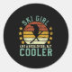 Sticker Rond Fille de ski _ Amusante Femme instructrice de ski