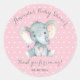 Baby shower Eléphant Fille Merci rose et gris Favoriser Sticker Rond Classique
