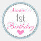 Fille et glam bleu clair parties scintillant scintille 1er anniversaire classique collant rond avec une écriture rose et gris chaud. Vous pouvez facilement ajouter le nom de votre choix et modifier la couleur et la police en utilisant l'option personnaliser !