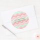 Sticker Rond Fille Motif géométrique rose et chevron menthe