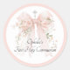 Sticker Rond Fille noeud rose floral première communion