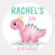 Sticker Rond Fille princesse Dinosaur rose et Turquoise fête d'