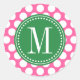 Sticker Rond Fille rose et vert foncé Gros Pois Monogramme
