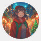 Jolie fille Anime sur un Stickers de Noël de jour d'hiver.