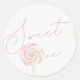 Sticker Rond Filles' Rose Sweet One Candy Glace Cream 1er anniv