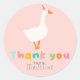 Ce sticker de 1er anniversaire pour filles mignonnes et amusantes comporte une oie idiote avec un casquette de fête rose, le mot 'merci', et peut être personnalisé avec le nom de votre enfant dans la typographie mignonne et lunatique. La ferme colorée parfaite pour le premier anniversaire de votre petit!